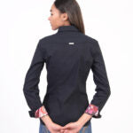 East meets West in this amazing technical barn-to-street shirt. The Annie-O Western Show Shirt is designed for today’s modern rider. Made of a lightweight 2-way stretch cotton blend fabric offering superior performance and comfortable fit. A mesh lined back yoke adds cooling airflow. Beautiful Liberty fabric prints on the inside collar band and cuffs add a touch of fun and sophistication.