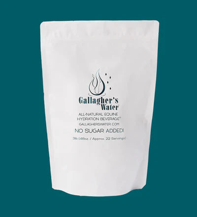 Gallagher’s Water is the patented, original, all-natural equine hydration beverage. In a nutshell, it is a natural flavor enhancement powder mix - with electrolytes and trace minerals - designed to encourage horses to drink water.