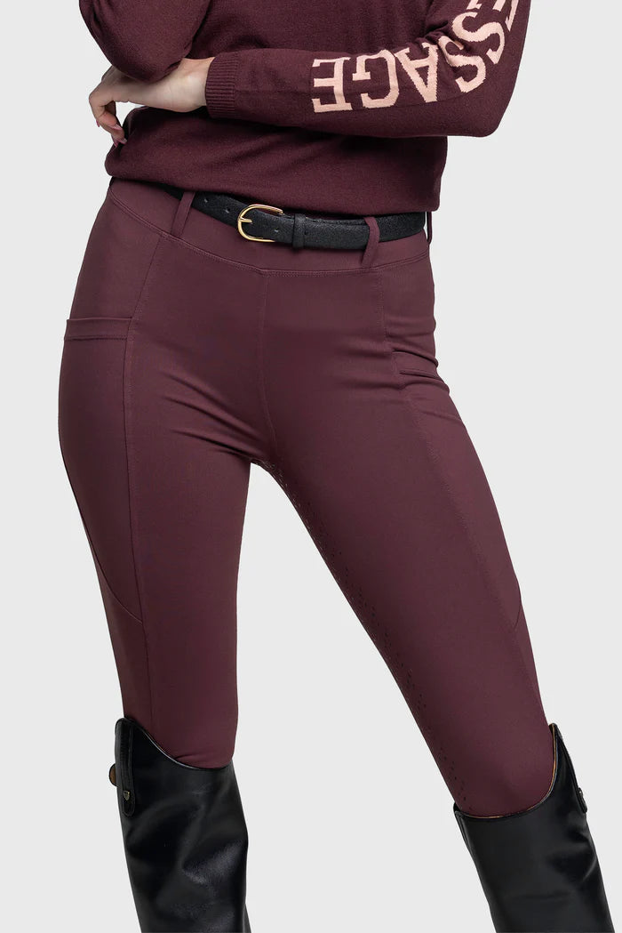 Silicone riding leggings are featured in rich colors with side pockets, belt loops and lovely petal full seat silicone pattern. The rise hits at the natural waist, 4-way stretch, just the right amount of compression for ultimate comfort.