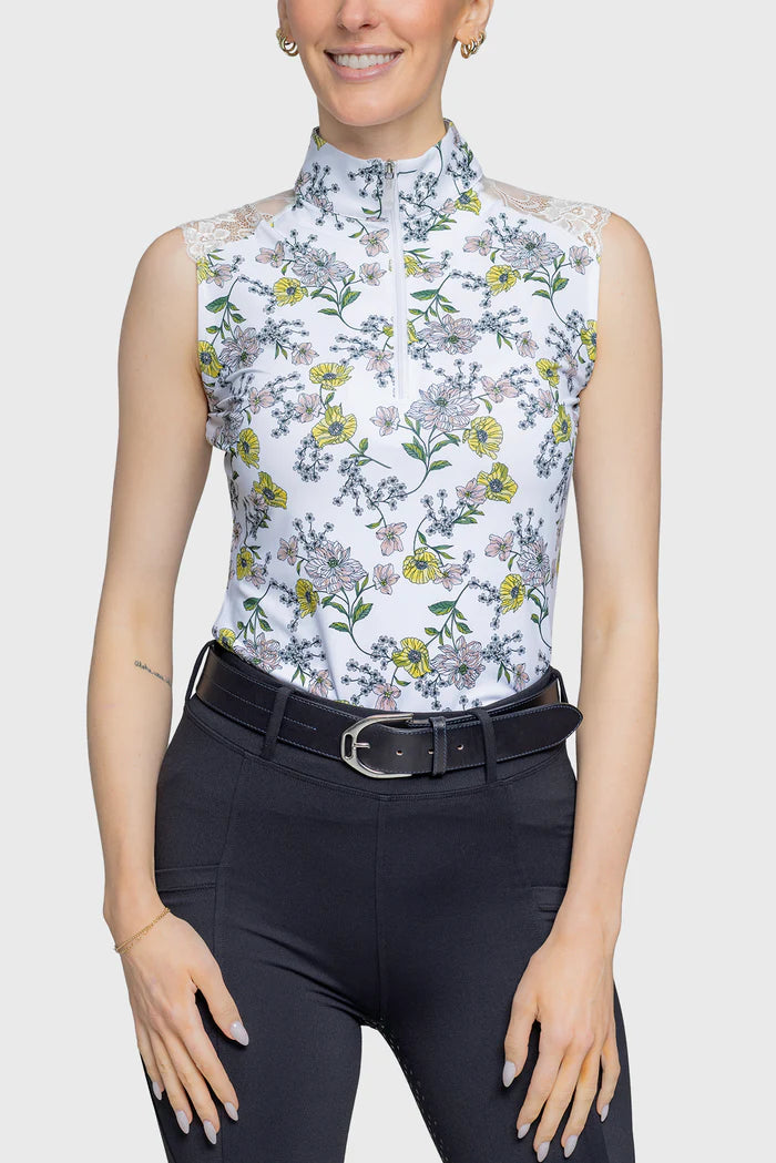 This season our elevated, ¼ zip tank features our signature wild poppies print and soft, stretchy, feminine lace insets at the shoulders. UPF 30, (apply sunscreen under the lace) ¼ zip, soft 4-way stretch fabric in a contemporary fit