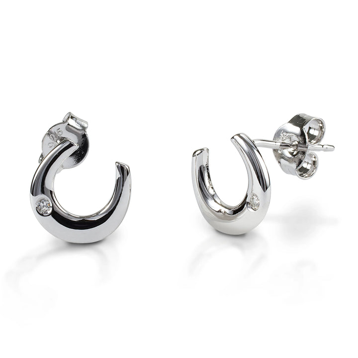 Modern and clean, the Kelly Herd Single Stone Horseshoe Earrings feature stylized sterling silver horseshoes with a small off set diamond.