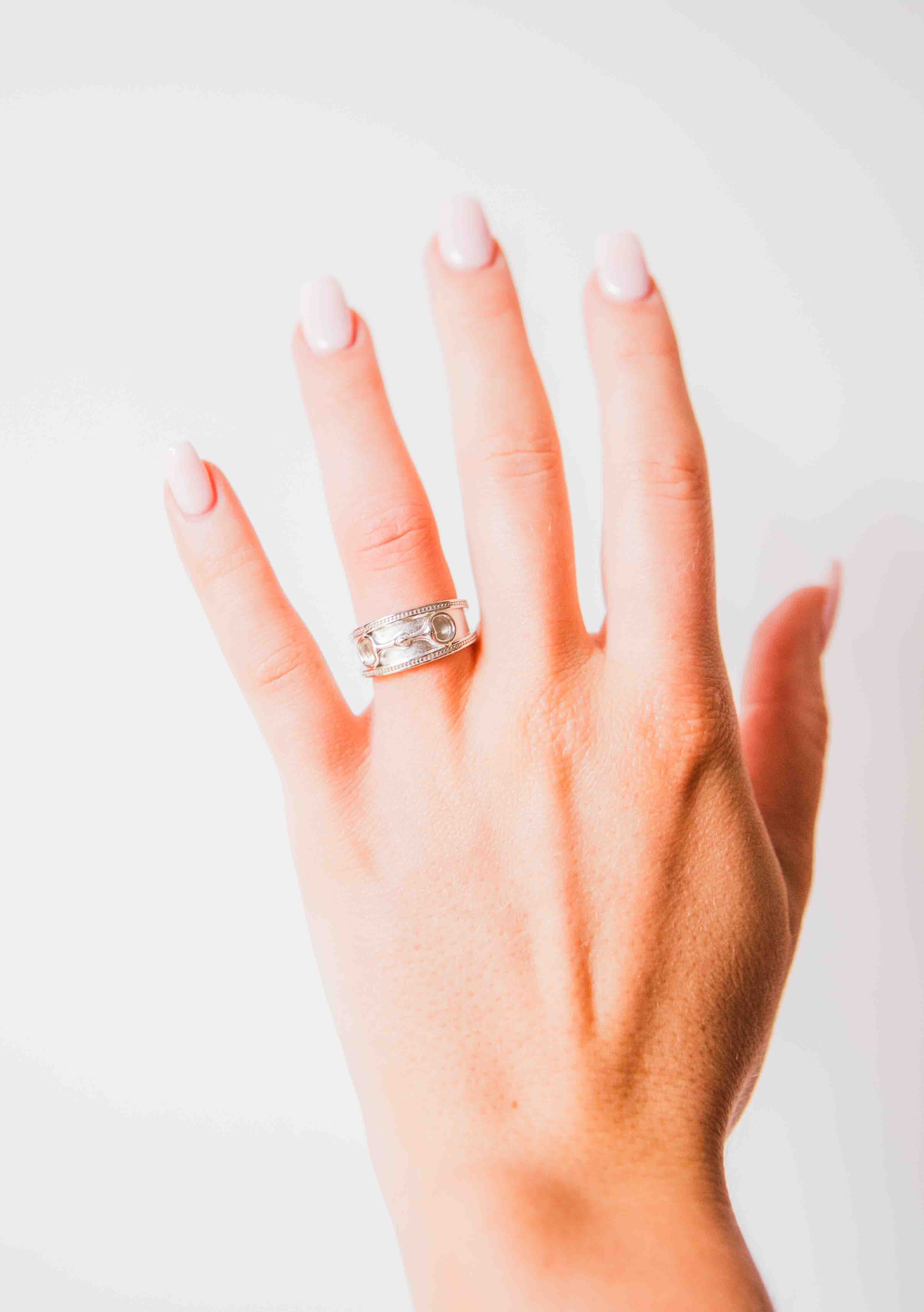 Perfect for the equestrian that prefers a ring without any bling! The Kelly Herd Wide Band Eggbutt Bit Ring features a 9mm wide band of brushed sterling silver with a raised beaded edge. In the center sits a perfectly formed tiny Eggbutt bit.