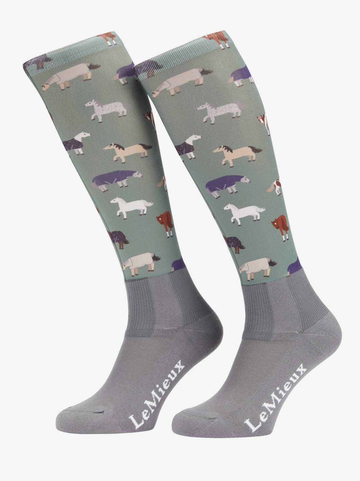 Finished with a sweet print or our mini toy ponies wearing fly blankets, the LeMieux Footsie Socks are fun for your feet!