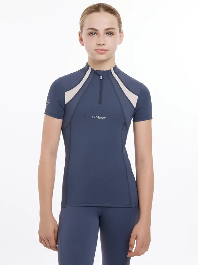 A UV50+ quarter zip base layer for active young riders. Designed to keep them cool and comfortable, this base layer has ventilating mesh panels coupled with sweat-wicking thermal fabric for optimal temperature control.