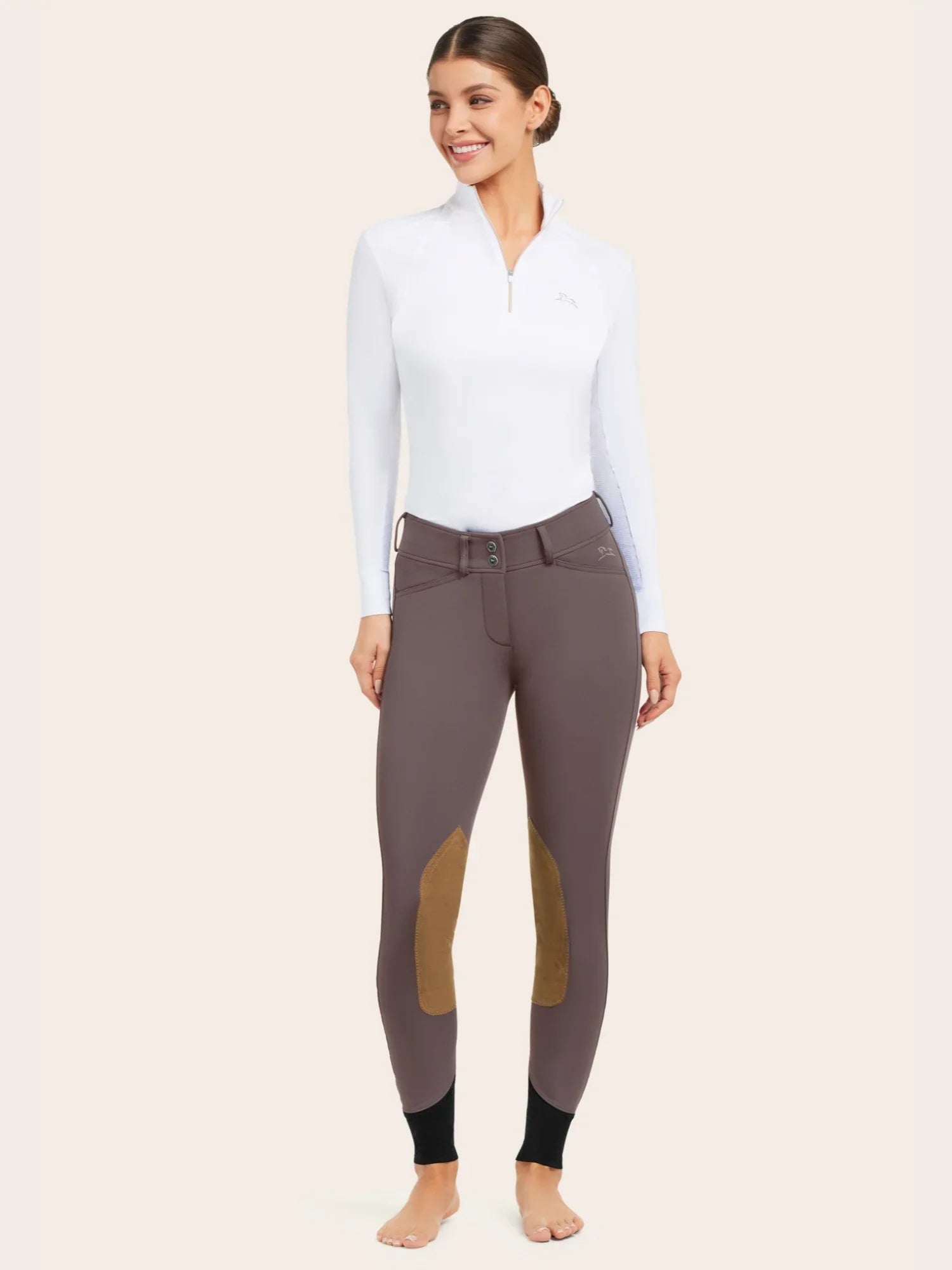 The Gracie breech is an update to our best-selling and fan-favorite Anna breech. Utilizing our signature breech fabric and all the classic details you know and love from the Anna, the Gracie features an updated fit in "The Perfect Rise," a mid-rise design. This style also includes a Comfort Stretch waistband and a tummy-control pocket design that will leave you feeling more comfortable and secure in your breeches than ever before.