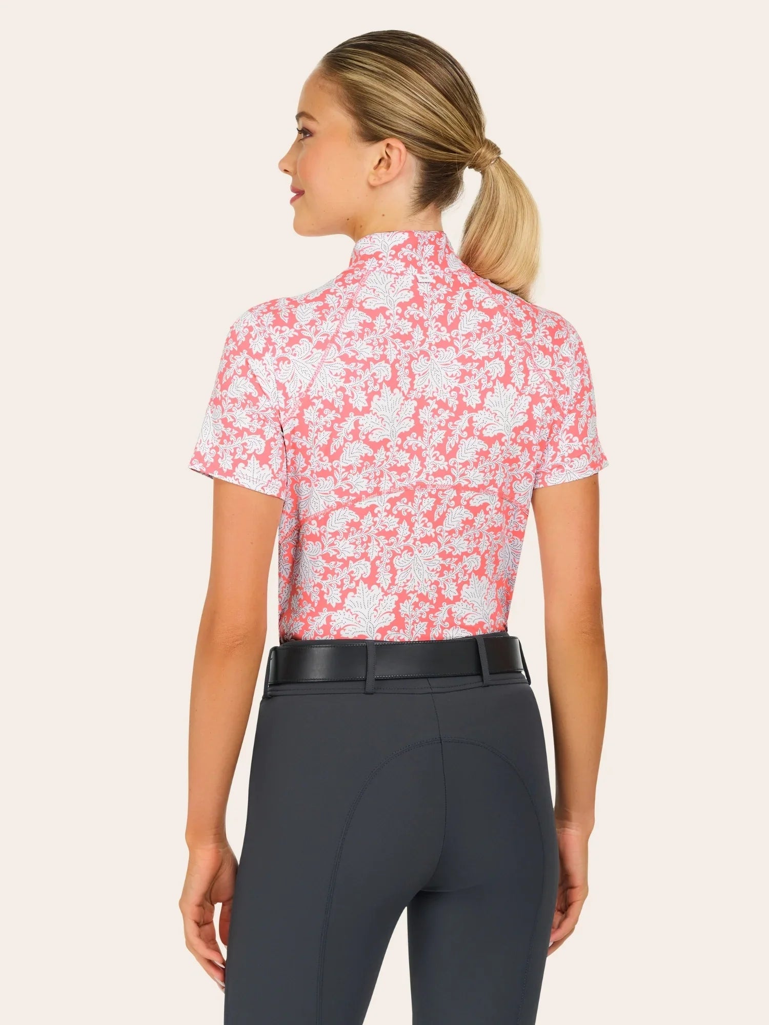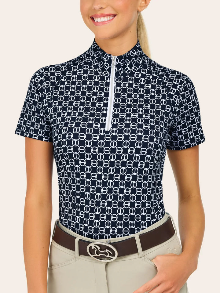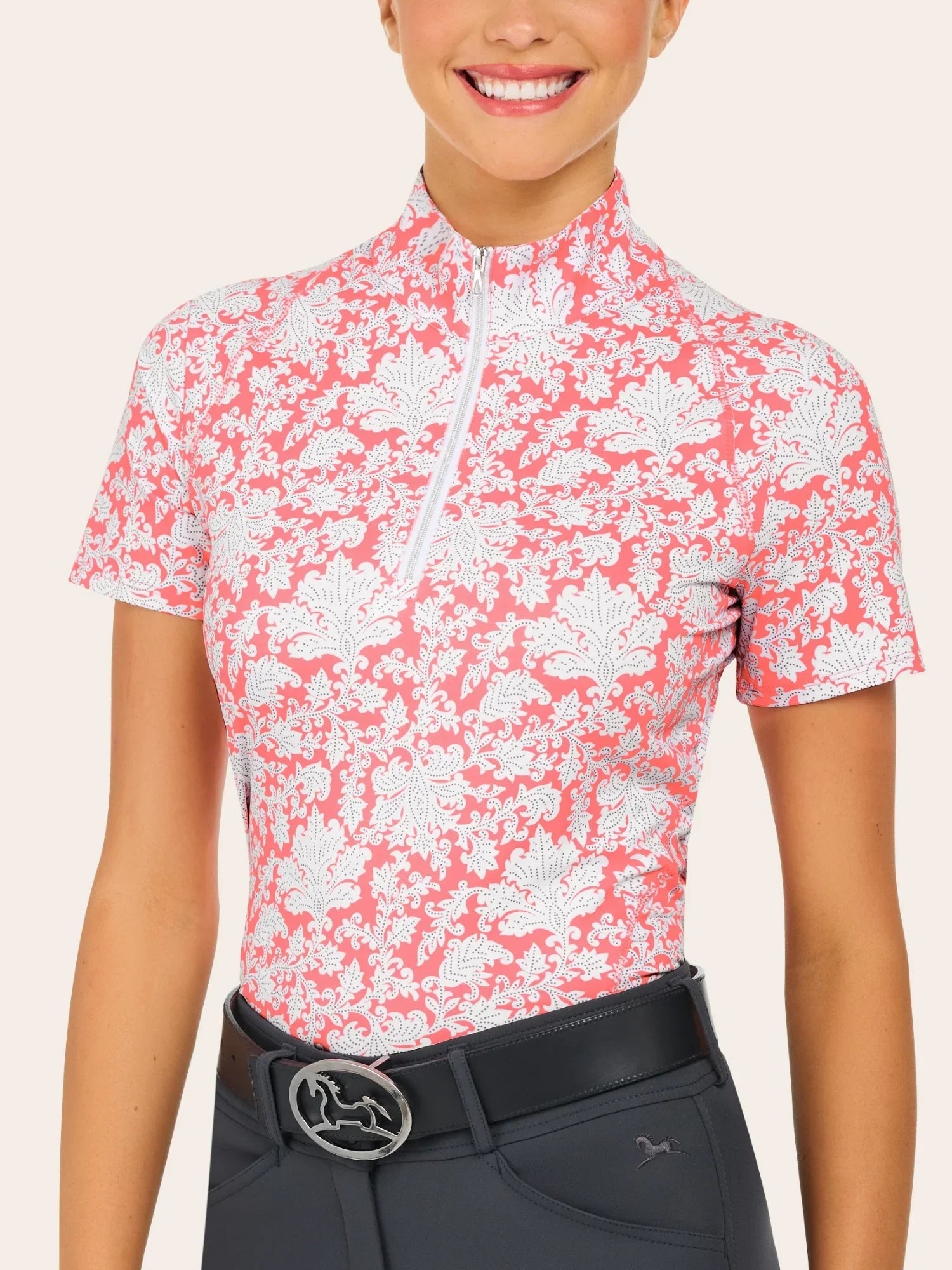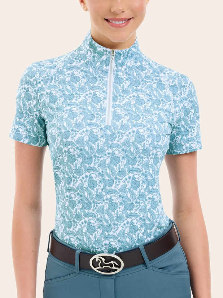 The Lucy schooling shirt is a short sleeve, ¼ zip style featuring R.J. Classics silky, cooling fabric. Classic seam lines and a subtle microprint add dimension and color to your schooling outfits without compromising sun protection.